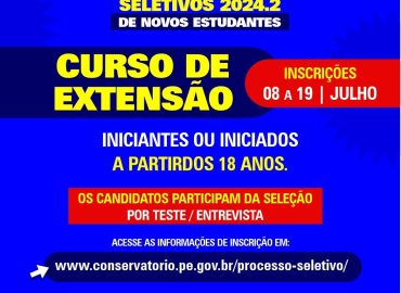 Interessados devem se inscrever até o dia 19 de julho O Conservatório Pernambucano de Música (CPM), abriu, nesta segunda-feira (08), […]