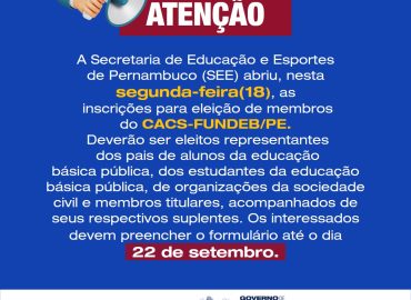 Candidatos podem se inscrever até o dia 22 de setembro pela internet A Secretaria de Educação e Esportes de Pernambuco […]