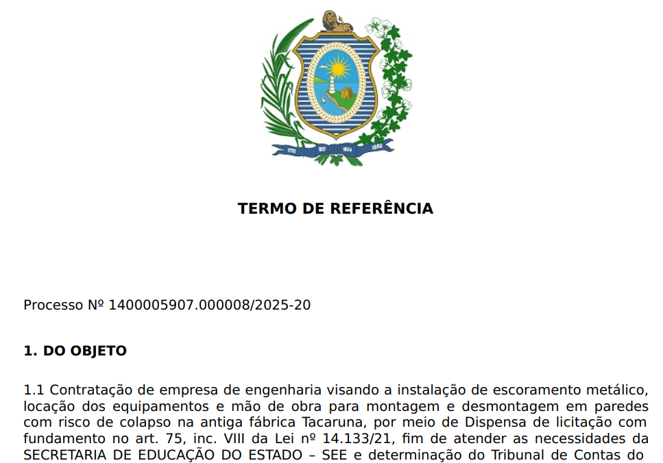 AVISO DE DISPENSA ELETRÔNICA – PROCESSO Nº 3980.2025.CCD.CD.0003.SEE 01/09/202501/09/2025 Joas SouzaTERMO DE REFERÊNCIADIÁRIO OFICIAL