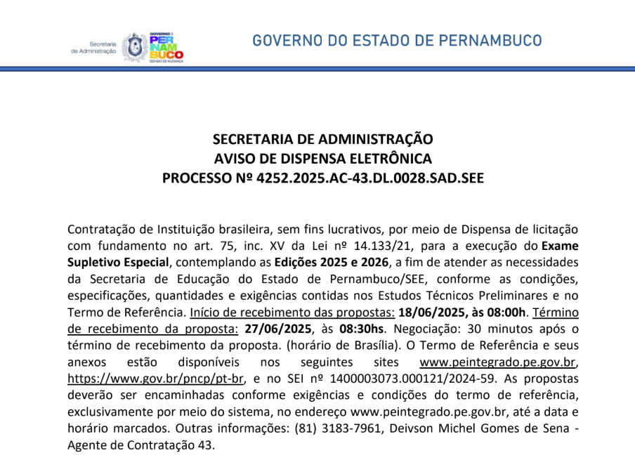 AVISO DE DISPENSA ELETRÔNICA – SEI:1400003073.000121/2024-59