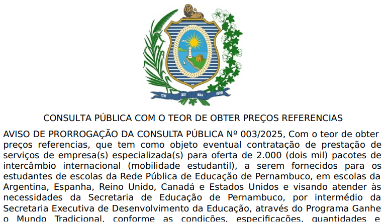 AVISO DE PRORROGAÇÃO DA CONSULTA PÚBLICA Nº 003/2025
