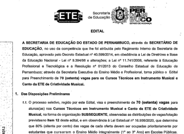Edital do Certame 2025.2 da ETE Criatividade Musical – Preenchimento de 70 (setenta) vagas para alunos(as) nos Cursos Técnicos em Instrumento Musical e Canto 08/06/202508/06/2025 Joas Souza