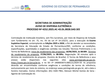 AVISO DE DISPENSA ELETRÔNICA – PROCESSO Nº 4412.2025.AC-43.DL.0029.SAD.SEE 22/07/202522/07/2025 Joas Souza