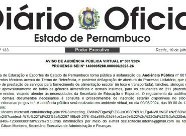 Edital de Seleção de Estudantes da Rede Estadual de Educação de Pernambuco para preenchimento vagas em Cursos de Aperfeiçoamento, de Formação Inicial e Continuada ou de Qualificação Profissional, ministrados pelo SENAC, SENAI e CESAR 08/08/2024 Joas Souza