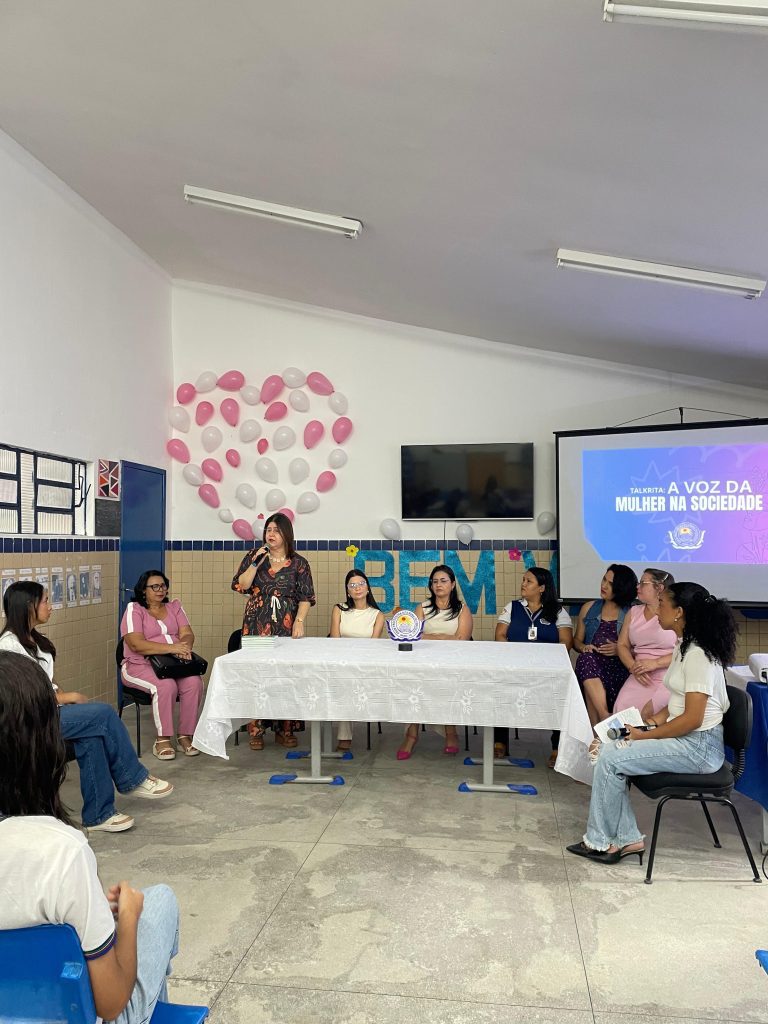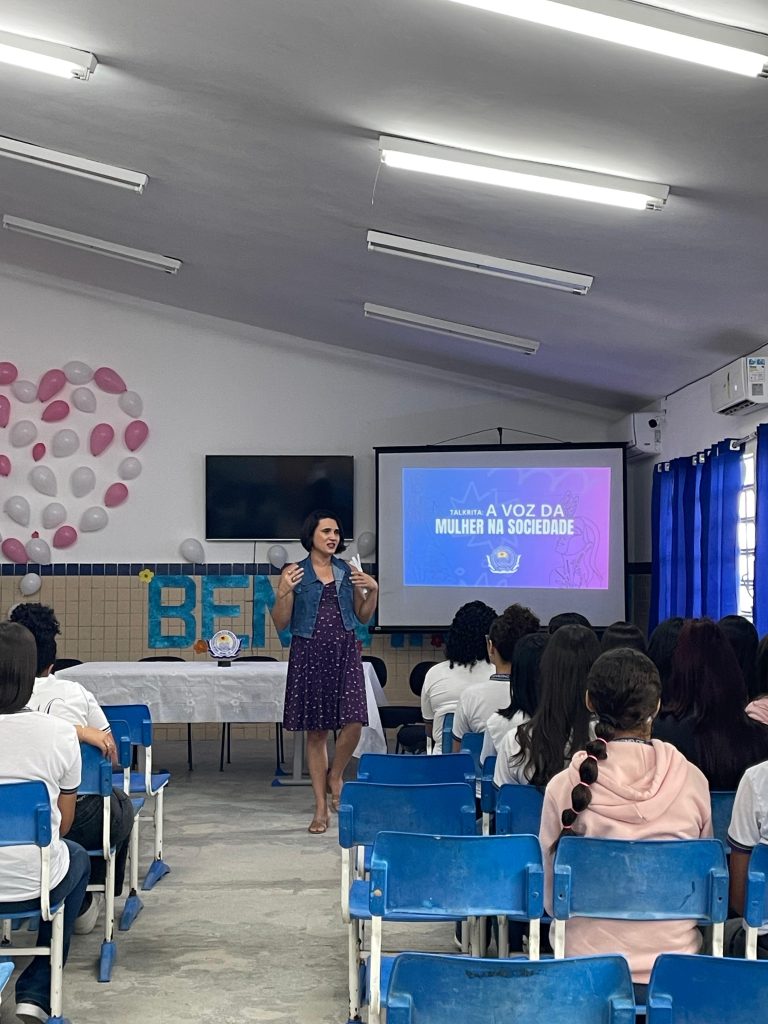 Na Escola de Referência em Ensino Médio (Erem) Professora Rita Maria da Conceição, em Orobó, as alunas participaram de um momento de debates em formato de talk show. O “Talk Rita”, projeto idealizado pela psicóloga da escola, Verônica Valente, em parceria com o Núcleo de Estudos de Gênero da unidade, convidou representantes de entidades governamentais e da sociedade civil para debater sobre temas como violências contra mulheres, diversidade feminina e educação como ferramenta de prevenção à violência. Na Erem Professor Antônio Pedro de Aguiar, também em Orobó, uma ação voltada para os alunos abordou o conceito de misoginia, a identificação de comportamentos misóginos e maneiras pelas quais os homens podem se engajar no combate à violência contra mulheres e meninas.