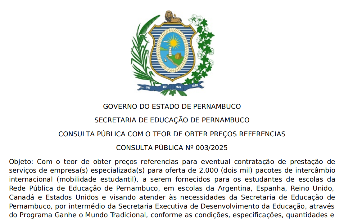 CONSULTA PÚBLICA COM O TEOR DE OBTER PREÇOS REFERÊNCIAS – No. 003/2025 29/12/202529/12/2025 Joas SouzaCONSULTA PÚBLICA