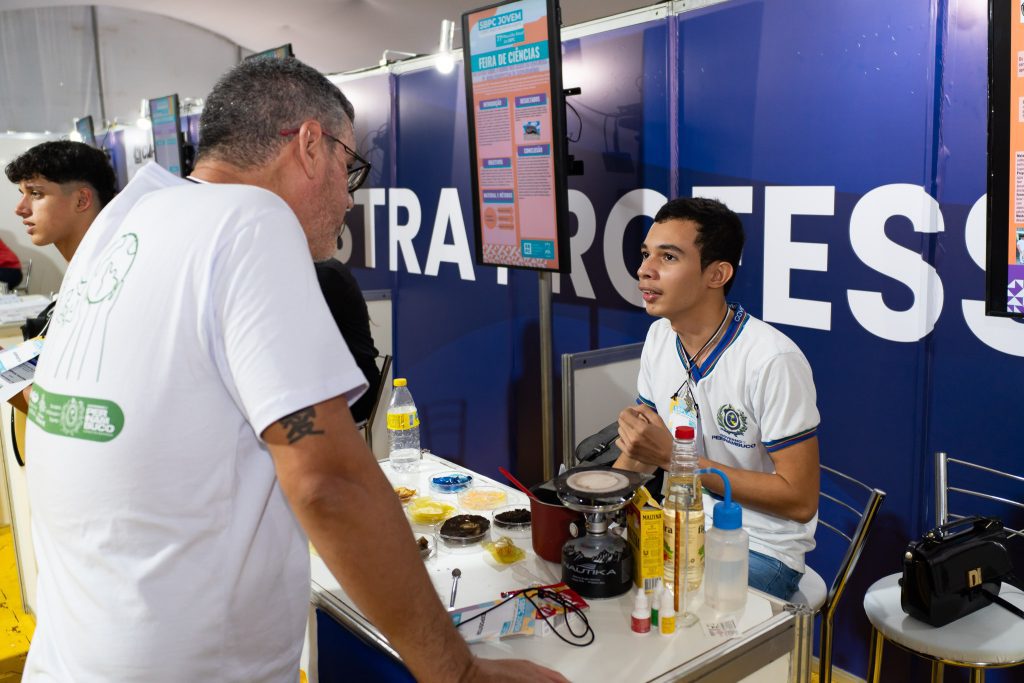“A gente fez um bioplástico de matéria orgânica para ajudar na sustentabilidade do mundo. Afinal, atualmente o plástico comum demora muitos anos para se degradar. A ideia foi justamente criar um material plástico resistente mas que em pouco tempo se degradasse por completo sem afetar o meio ambiente. É um sentimento muito bom poder trazer esse trabalho e ver pessoas de todo o Brasil parando para prestigiar a nossa ideia. Estou realmente maravilhado com esse evento tão grandioso”, completou Verterson.