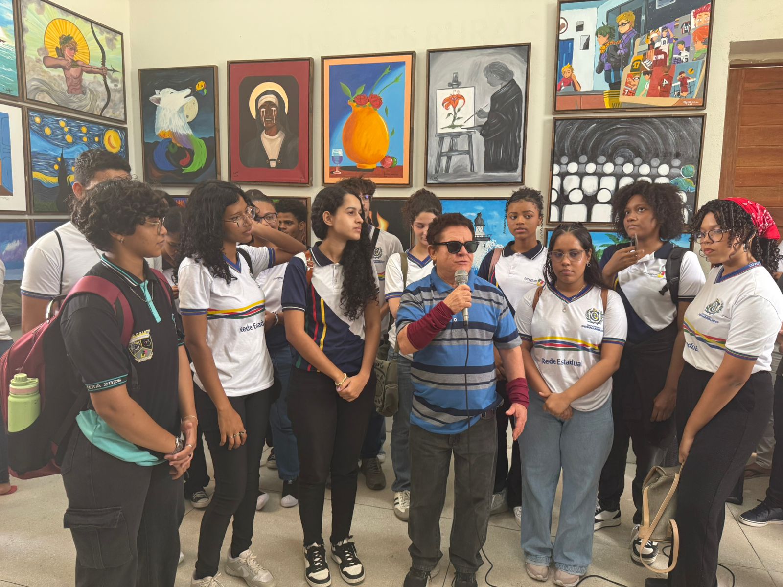 Francisco Guerra de Holanda, coordenador do projeto e da biblioteca, explicou o surgimento dessa iniciativa. “O projeto teve início logo depois da pandemia. Começamos trabalhando com tinta acrílica profissional e telas de 80 por 60 centímetros, todas emolduradas. Os primeiros trabalhos foram feitos pelos alunos do 1º, 2 e 3º ano do Ensino Médio. Além das pinturas, também apresentamos um trabalho em cordel, com o tema Justiça Socioambiental, desenvolvido junto com os alunos da biblioteca. Eles declamaram seus cordéis e falam sobre as iniciativas” disse o coordenador.