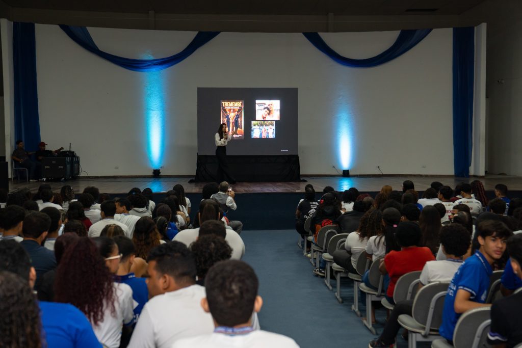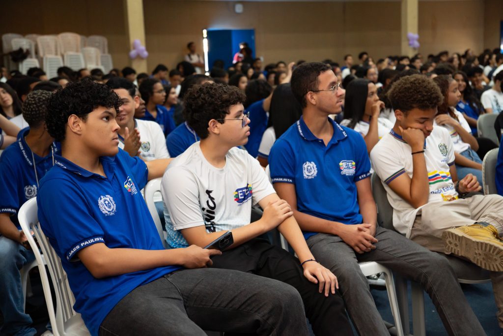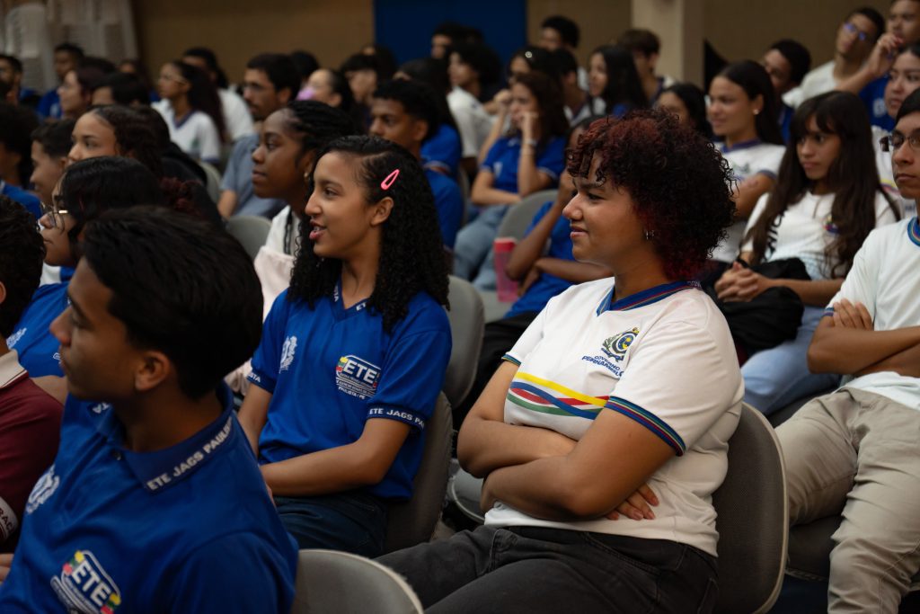 Nesta terça-feira (18), os estudantes da Escola Técnica Estadual (ETE) José de Alencar Gomes da Silva, em Paulista, participaram de um bate-papo sobre “Narrativas” com a empresária e historiadora Chris Kumakola. O encontro reuniu cerca de 300 estudantes no auditório da unidade de ensino para discutir sobre como as experiências de vida moldam os resultados, influenciam a forma como nos apresentamos ao mundo e impactam diretamente as escolhas.