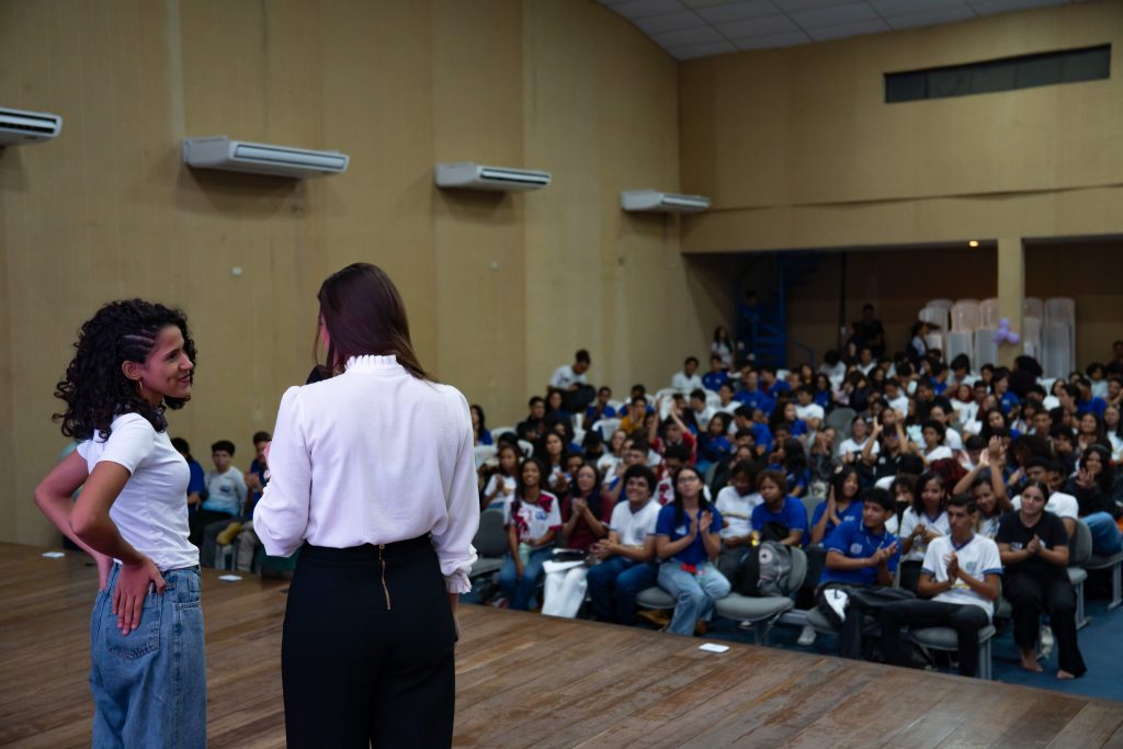 A estudante Ana Vitória, que pretende cursar Engenharia Civil, destacou a importância do tema no dia a dia escolar e pessoal. “Acho isso muito útil, até mesmo quando vamos apresentar um trabalho, um seminário ou em qualquer outra situação da vida. Aqui na escola, a gente aprende a ter controle sobre o nosso comportamento e leva isso para fora da sala de aula. A forma como você se comporta é importante, porque você vai lidar com muitas pessoas, inclusive com pessoas influentes, e precisamos saber se comunicar bem. Ter uma boa postura, saber abordar alguém e falar de maneira adequada é fundamental para construir a nossa imagem pessoal”, ponderou.