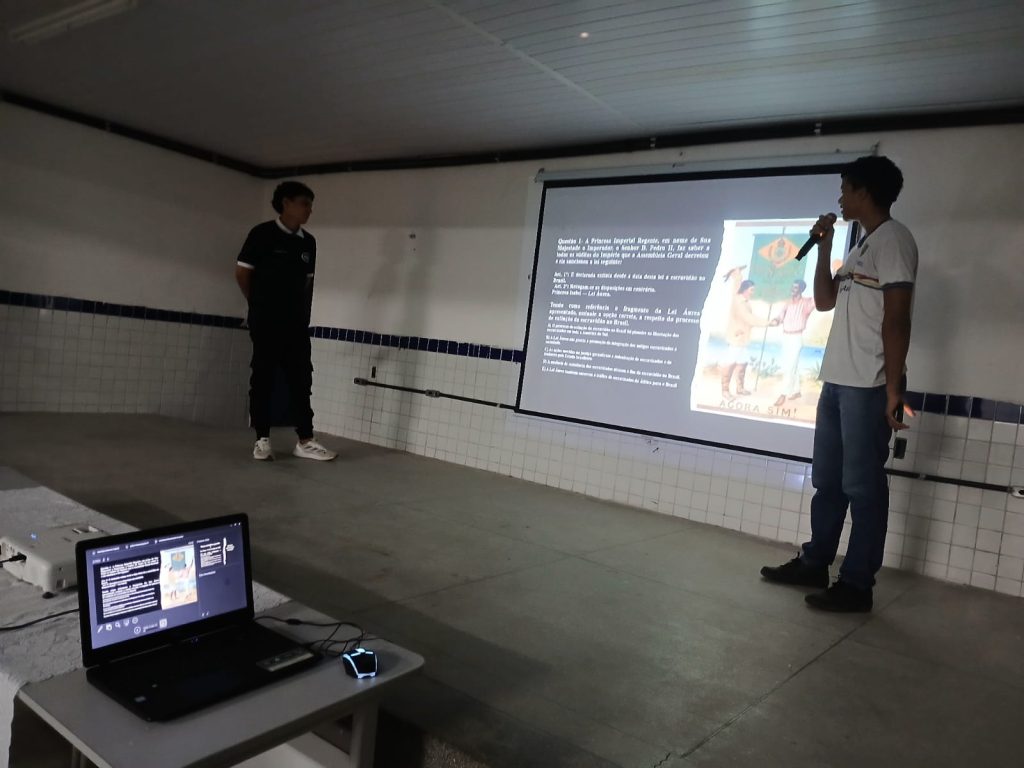 Na EREM Augusto Gondim, em Goiana, a segunda edição do Projeto Compartilhando Saberes se destacou pela sua dinâmica acolhedora, produção de slides, apresentação e correção de questões do ENEM com os estudantes como protagonistas. Toda a atividade foi supervisionada pelos professores das disciplinas de humanas e arte, sob a coordenação do docente Valdemberg Dias.