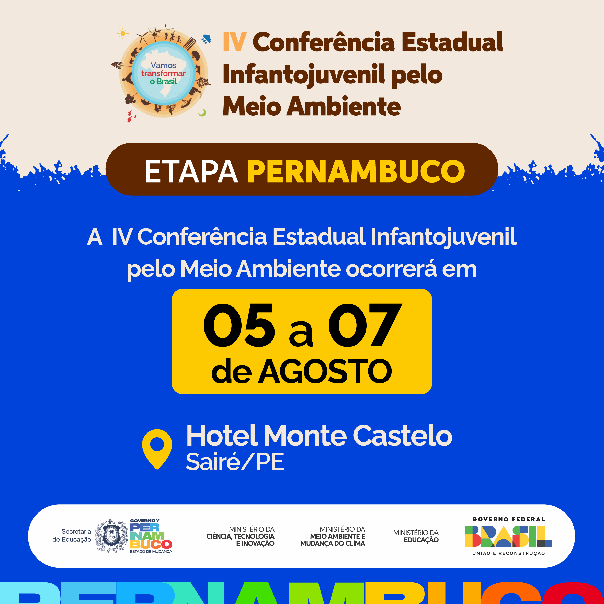 É dado início à etapa estadual da IV Conferência Estadual Infantojuvenil pelo Meio Ambiente (CEIJMA). Com o tema “Vamos Transformar o Brasil com Educação e Justiça Climática”, a etapa estadual da IV CEIJMA acontecerá entre os dias 05 e 07 de agosto, no Hotel Monte Castelo, em Sairé, com 113 escolas selecionadas.