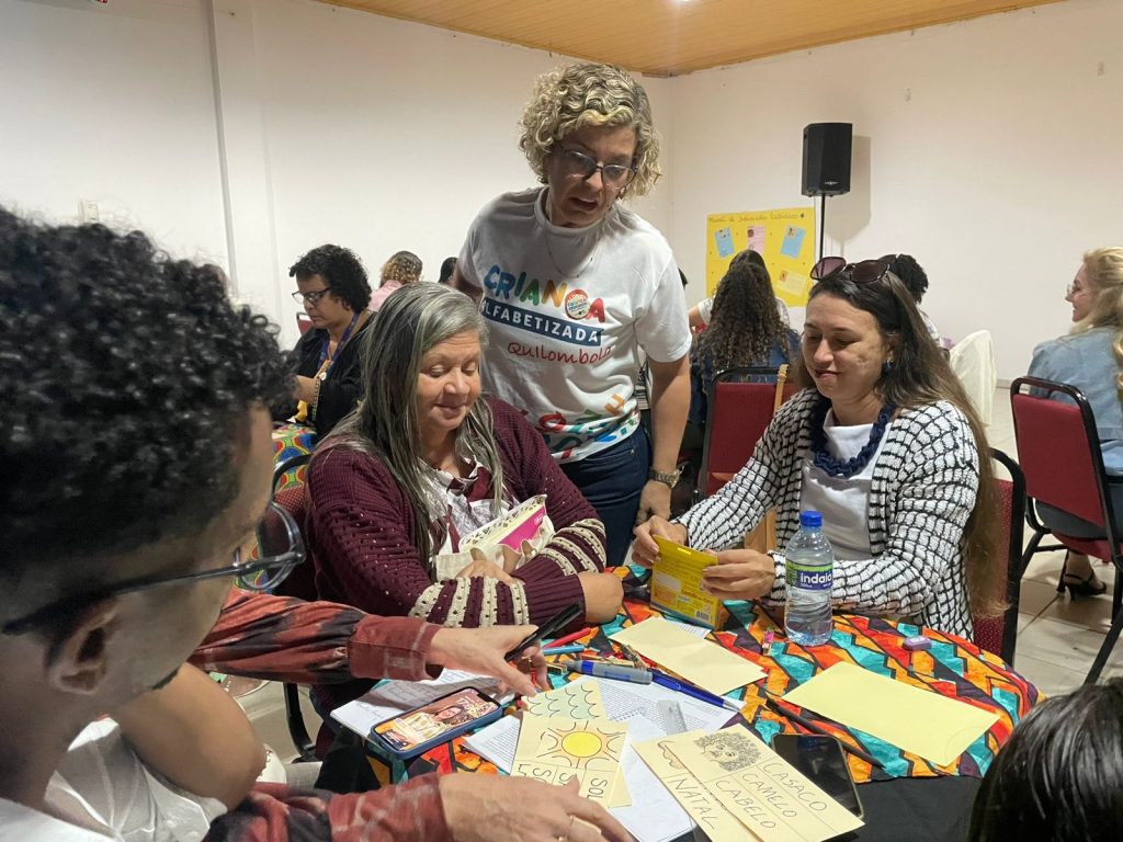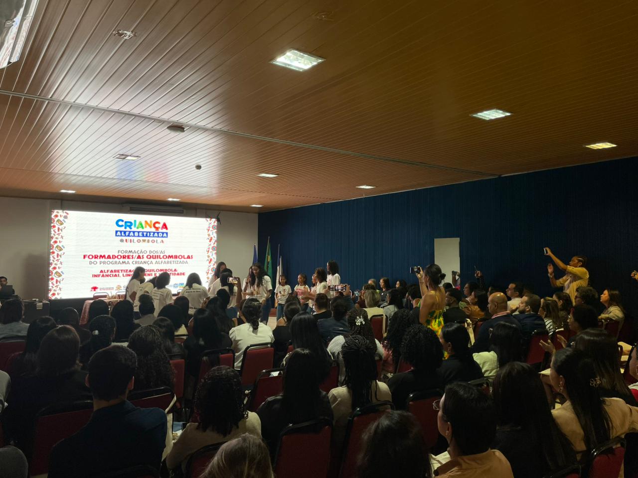 Com o tema “Alfabetização Quilombola: infâncias, linguagens e identidade”, o encontro reuniu formadores e articuladores do componente quilombola do programa. O objetivo foi o de fortalecer as práticas pedagógicas voltadas às especificidades das crianças quilombolas, promovendo uma educação que respeite e valorize as identidades, histórias e culturas afro-brasileiras.