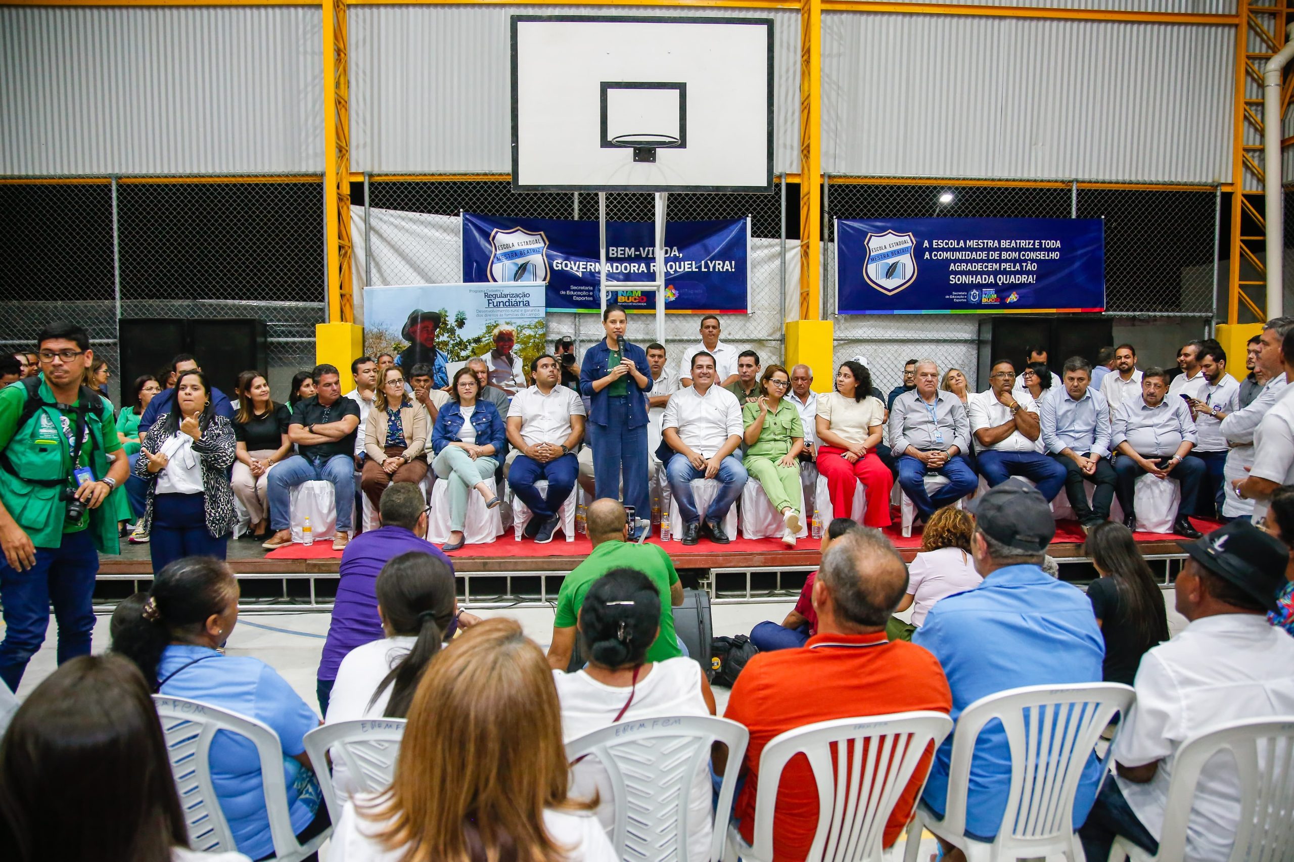 Encerrando as entregas do dia, foi a vez da Escola Estadual Mestra Beatriz, no município de Bom Conselho, ter a sua quadra formalmente inaugurada, beneficiando mais de 400 estudantes. O investimento feito na construção das duas quadras foi na ordem de aproximadamente R$ 3 milhões.