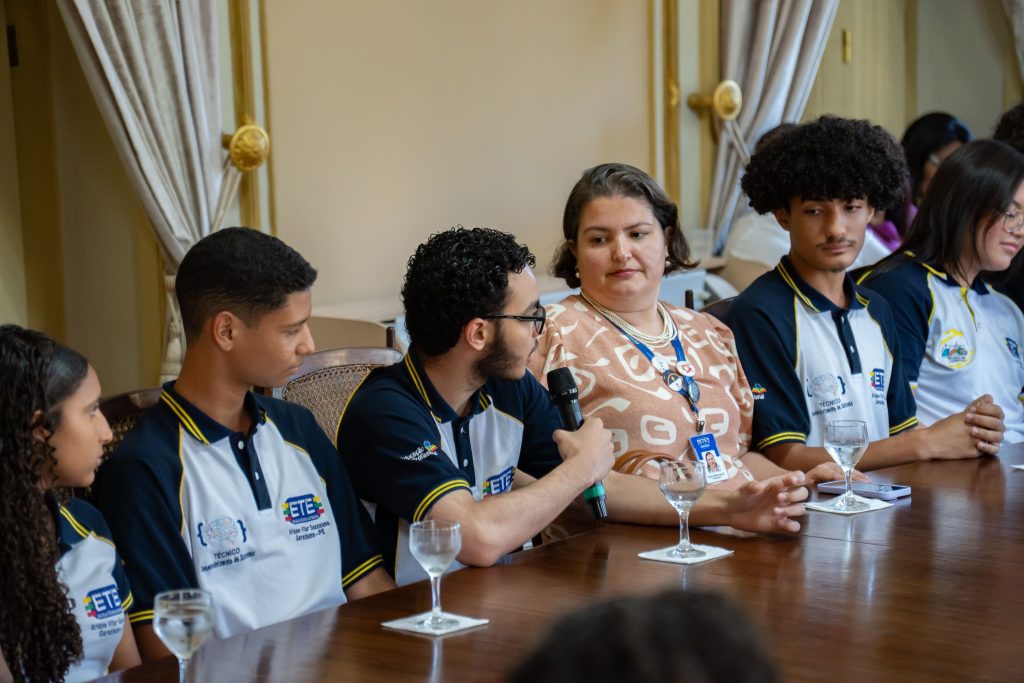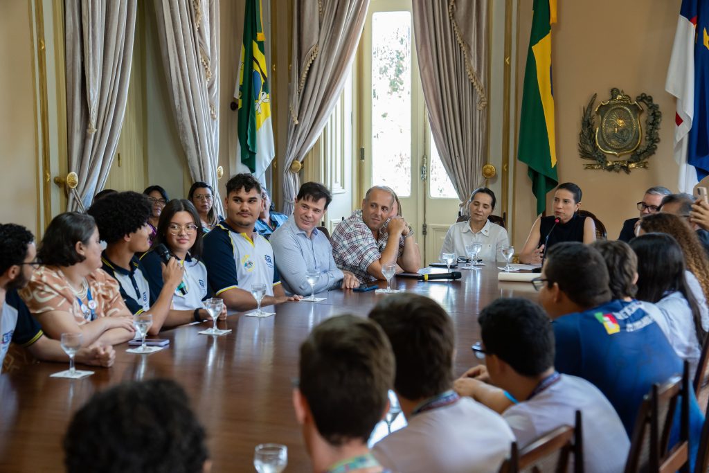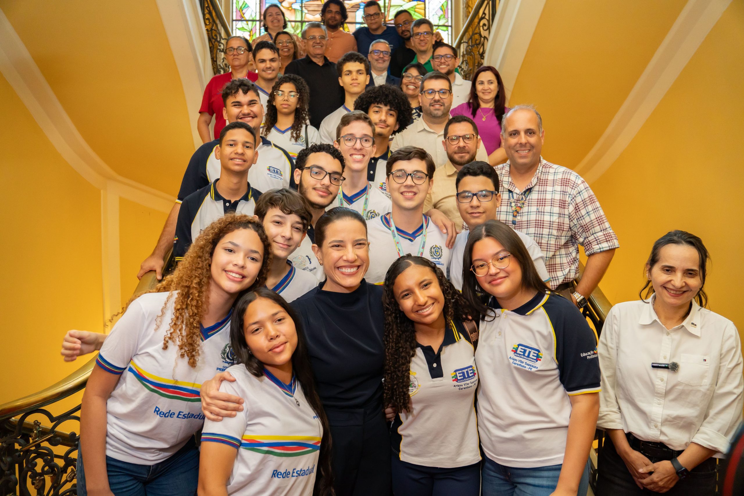 A governadora de Pernambuco, Raquel Lyra, recebeu, nesta quinta-feira (30), no Palácio do Campo das Princesas, os estudantes vencedores do Concurso Cultural de Inovação – Inova CRIA: Ideias que Transformam. A iniciativa é promovida pelo Governo de Pernambuco, por meio da Secretaria de Ciência, Tecnologia e Inovação (SECTI) e da Secretaria de Educação, em parceria com o Porto Digital.