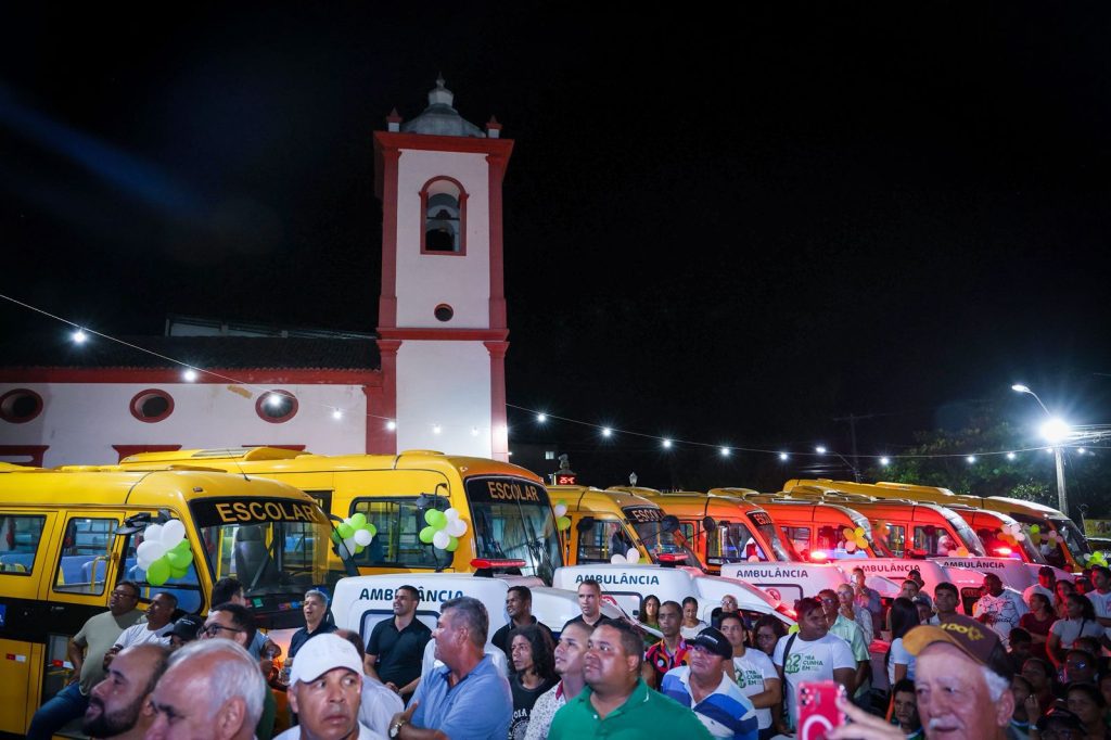 O município também foi contemplado com importantes investimentos em transporte escolar.. Entre 2023 e 2025, Feira Nova recebeu nove veículos escolares, fortalecendo o Regime de Colaboração entre Estado e município.