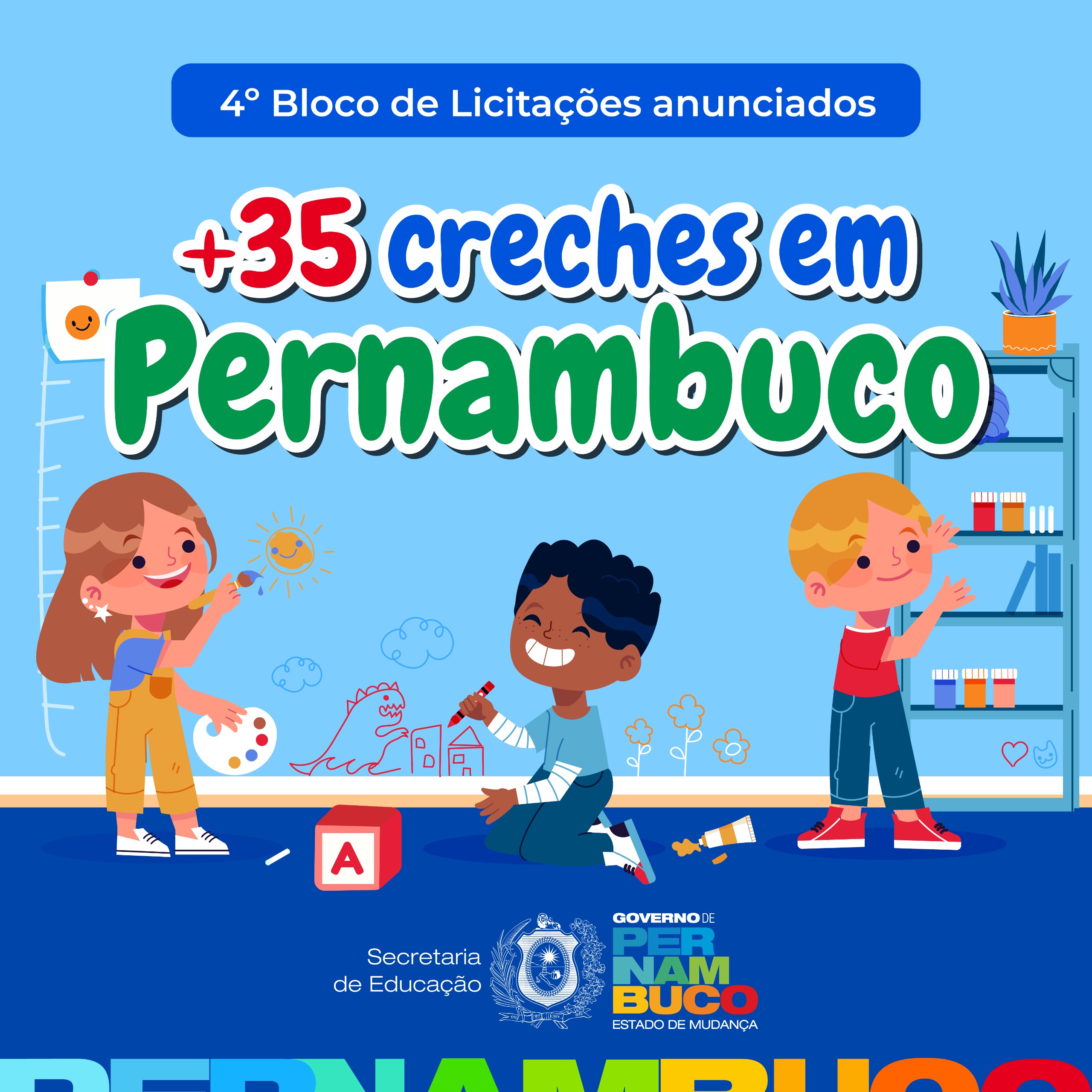 Com o anúncio deste quarto bloco, Pernambuco chega a 192 creches com licitações em curso, totalizando um investimento de mais de R$ 1,1 bilhão. Deste total, XX com ordem de serviços assinada e obras já em execução. A execução e fiscalização das obras ficam a cargo da Companhia Estadual de Habitação e Obras (Cehab). A meta do Governo do Estado é alcançar 250 unidades licitadas, criando 60 mil novas vagas para a educação infantil em todo o estado, consolidando uma rede pública mais estruturada e acessível a todos.