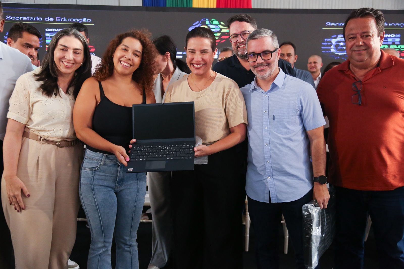 O evento contou com a presença de gestores, adjuntos e professores de 44 escolas da rede de ensino do município de Petrolina, além de autoridades. Na ocasião, a governadora de Pernambuco realizou a primeira entrega simbólica dos notebooks para 115 servidores recém empossados que concluíram o processo de adesão dos equipamentos.