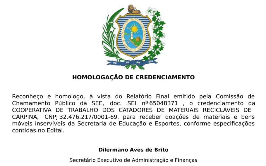 HOMOLOGAÇÃO DE CREDENCIAMENTO – SEI: 1400004603.000035/2021-21