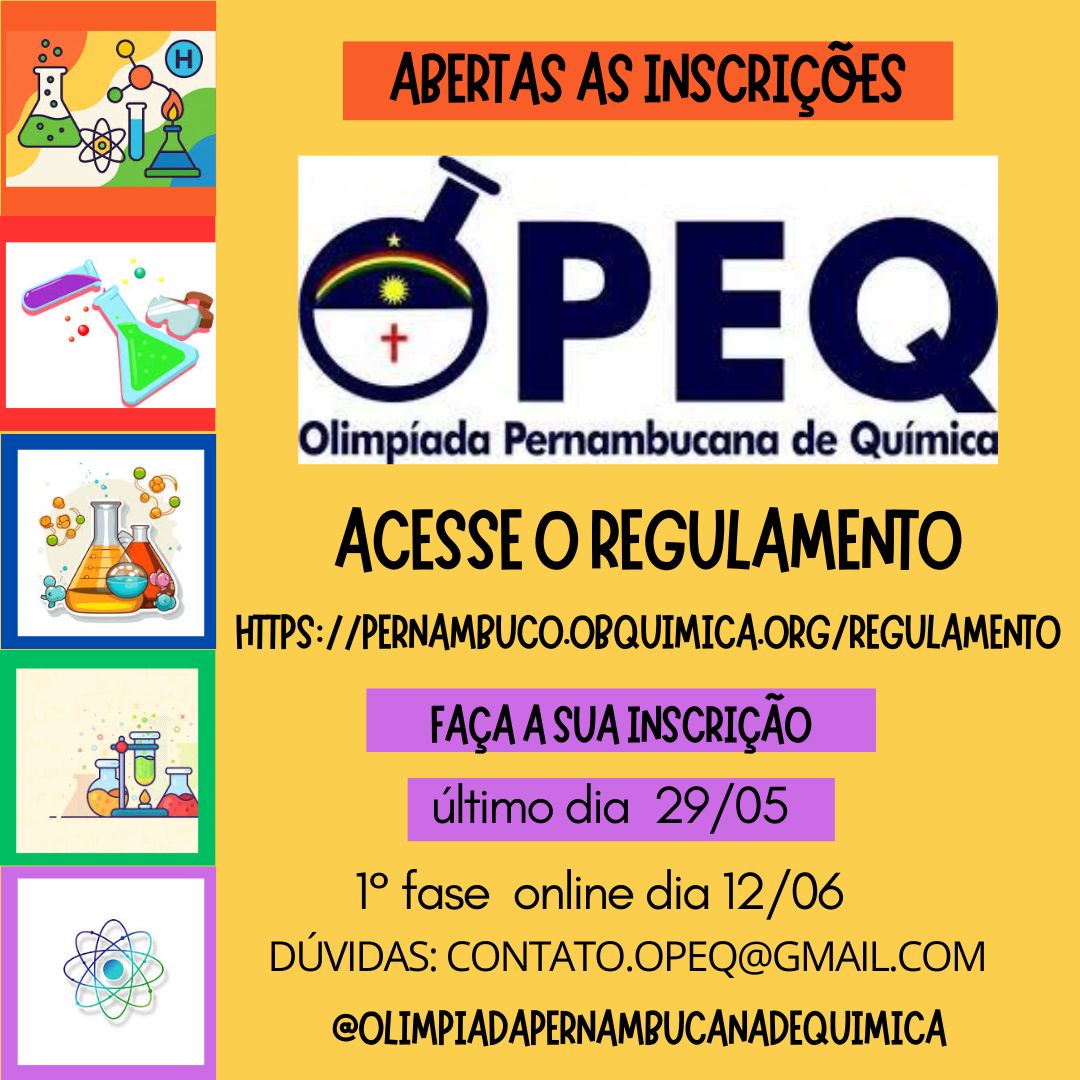 A OPEQ é realizada pela Universidade Federal Rural de Pernambuco (UFRPE) e conta com apoio do Conselho Regional de Química e da Secretaria de Educação do Estado.