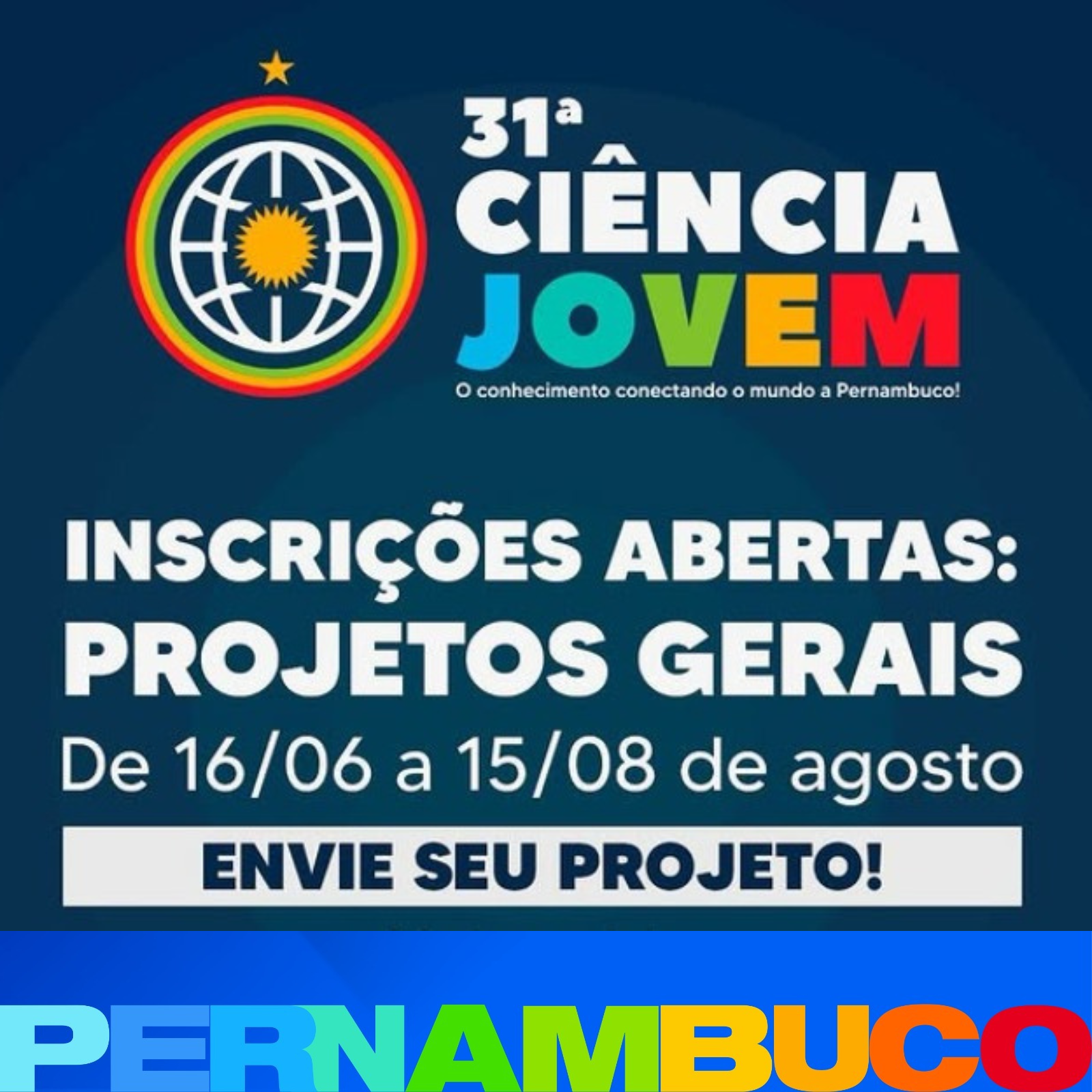 Estão abertas até o dia 15 de agosto as inscrições para a 31ª edição da Ciência Jovem, uma das principais feiras de divulgação científica da Educação Básica no Brasil. Escolas de todo o Estado podem participar, inscrevendo um projeto por categoria, independentemente de terem feito a pré-inscrição.