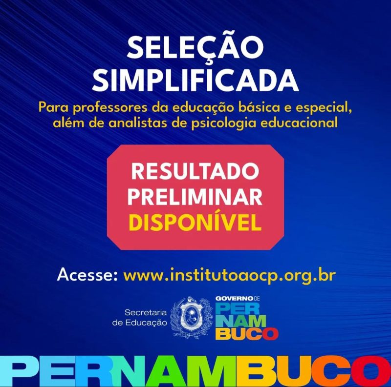 Candidatos têm até a próxima sexta-feira (26) para interpor recursos no site do Instituto AOCP A Secretaria Estadual de Educação (SEE) divulgou, nesta terça-feira (23), o resultado preliminar da prova de títulos e experiência profissional da Seleção Pública Simplificada, que oferece 1.999 vagas para professores da educação básica e especial e para analistas de psicologia…