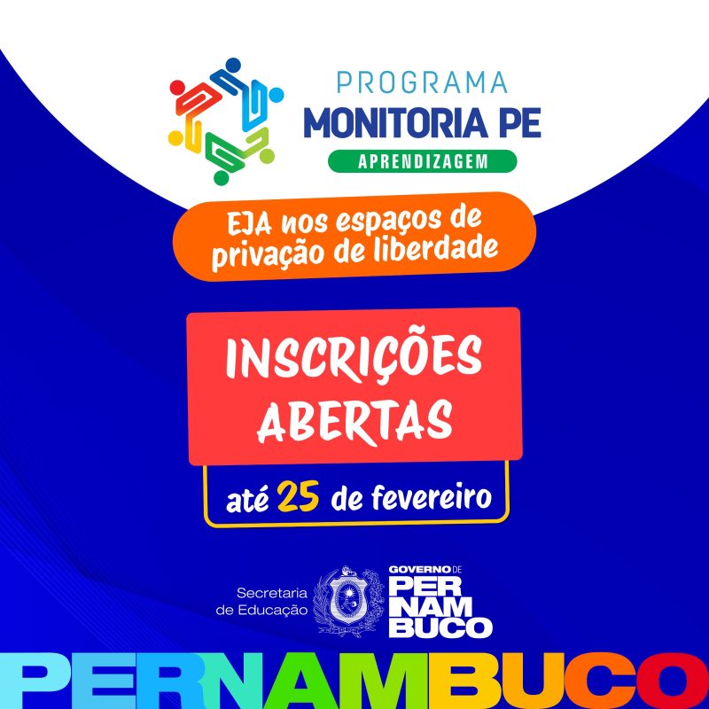 Interessados devem se inscrever nas secretarias das escolas participantes até o dia 25 de fevereiro A Secretaria de Educação do Estado (SEE) abriu, nesta sexta-feira (20), as inscrições para o processo seletivo do Programa Monitoria PE – Aprendizagem da Educação de Jovens e Adultos (EJA) nos espaços de privação de liberdade. O Objetivo do certame…
