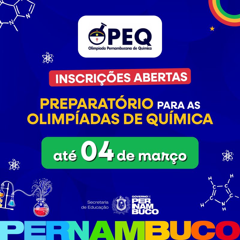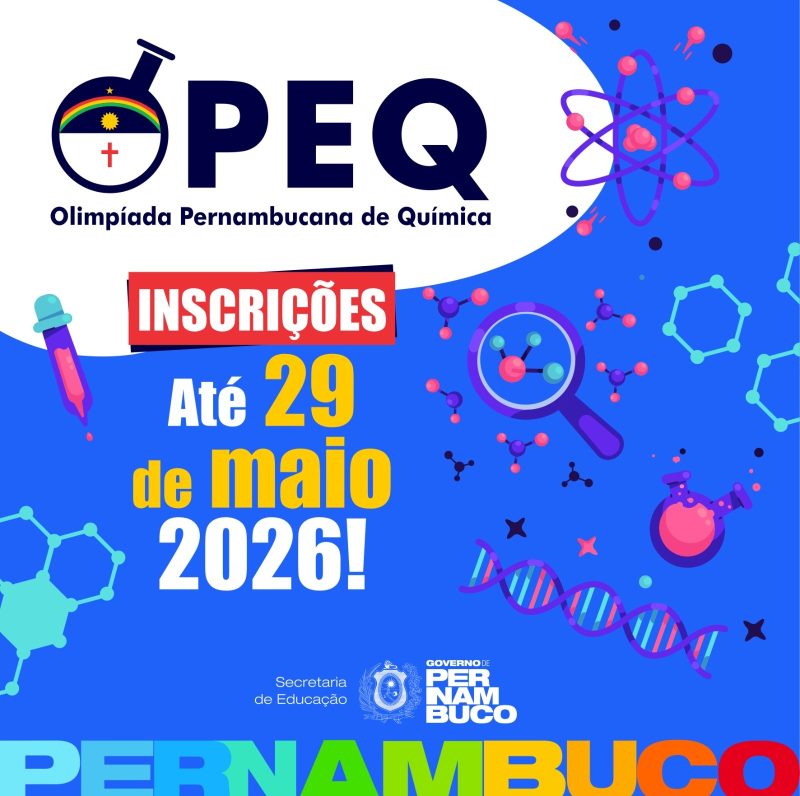 Interessados devem se inscrever até o dia 29 de maio pela internet Estão abertas as inscrições para a Olimpíada Pernambucana de Química (OPEQ) 2026. Podem participar estudantes do 9º ano do ensino fundamental, 1º, 2º e 3º ano do ensino médio e 4º ano do ensino técnico. As inscrições devem ser feitas exclusivamente pela internet…