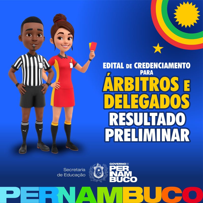 Confira os pré-selecionados A Secretaria de Educação de Pernambuco (SEE) divulgou, nesta terça-feira (07), o resultado preliminar do edital para o credenciamento de pessoas físicas para prestação dos serviços de delegado técnico e de árbitro de jogos esportivos, lançado em março deste ano. Este resultado é voltado para os candidatos inscritos até o dia 19…