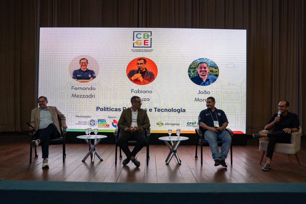 Na primeira roda de conversa, os palestrantes discutiram sobre o tema “Políticas Públicas e Tecnologia”. O painel contou com a presença do professor da Universidade Federal do Paraná (UFPR), Fernando Mezzadri; do coordenador técnico esportivo do Instituto de Pesquisa Inteligência Esportiva (IPIE), João Moretti; e do secretário executivo de Esportes da Secretaria Estadual de Esportes, Fabiano Souza. A mediação ficou por conta do estrategista de negócios esportivos, Luciano Leonidio.