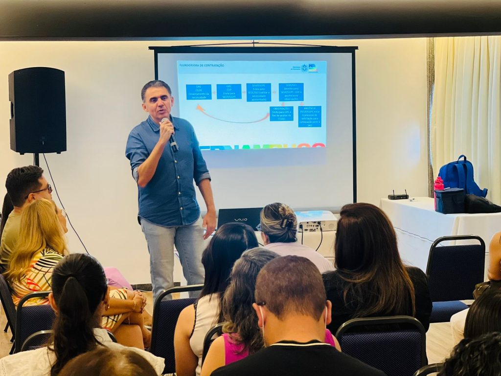 O secretário executivo de Administração e Finanças, Dilermano Brito, falou aos participantes sobre os investimentos do programa PE Acessível, do Governo do Estado, no qual estão incluídas as ações prioritárias da educação inclusiva. Já a secretária executiva de Gestão de Pessoas, Rafaela Ramos, falou sobre o fluxo em relação às demandas de professores e profissionais da educação inclusiva e das seleções para a área.