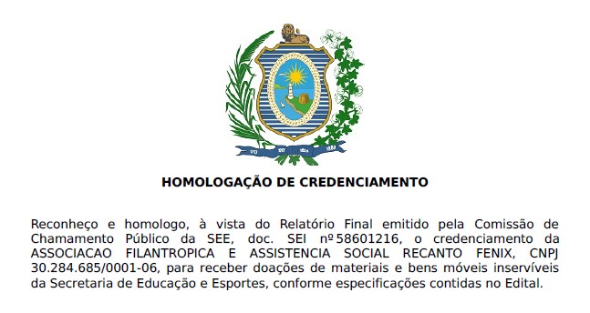 PUBLICAÇÃO DO ATO DE HOMOLOGAÇÃO DE CREDENCIAMENTO. SEI : 1400004603.000035/2021-21 18/11/202418/11/2024 Elson MeloHOMOLOGAÇÃO DE CREDENCIAMENTO/EDITAL
