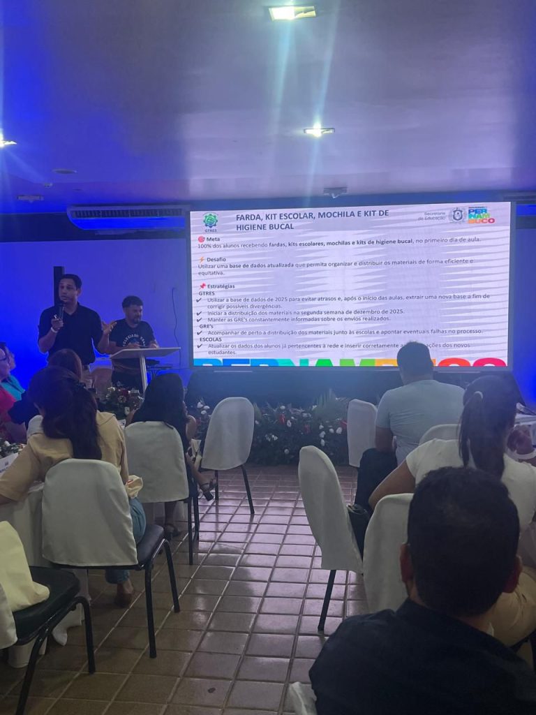 A Secretaria de Educação de Pernambuco (SEE), por meio da Secretaria Executiva de Gestão da Rede Escolar (Sege) realizou, entre os dias 02 e 04 de dezembro, o Encontro Colegiado Sege 2025.2. O evento reuniu lideranças da SEE, das gerências regionais, membros da Coordenação Geral de Gestão da Rede (CGGRs), técnicos de Monitoramento, Célula de Tecnologia da Informação (CTI) e da Célula de Normatização do Sistema Educacional (CNS), além de colaboradores de todo o Estado. Realizada no município do Cabo de Santo Agostinho, na Região Metropolitana do Recife, a iniciativa teve como foco apresentar os resultados das ações de Gestão da Rede realizadas no ano de 2025, assim como construir, conjuntamente, o planejamento para o ano de 2026.