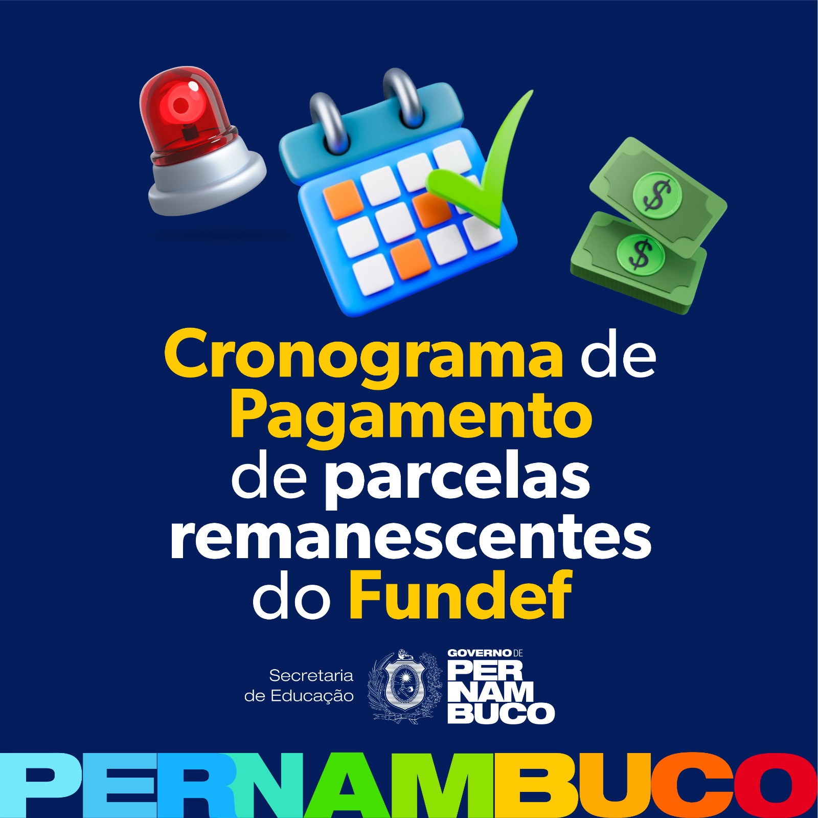 A Secretaria Estadual de Educação (SEE) divulgou, nesta quinta-feira (22), o cronograma de pagamento de valores remanescentes do Fundo de Manutenção e Desenvolvimento do Ensino Fundamental e de Valorização do Magistério (Fundef). As datas definidas podem sofrer alterações, que serão comunicadas previamente.