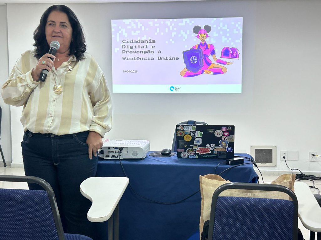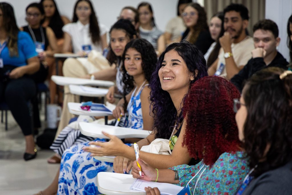 “Ser protagonista é representar outros estudantes e fazer a ponte com a gestão e mostrar qualquer dificuldade que a escola tiver. Esse evento é importante porque estou aprendendo sobre temas que eu não sabia ainda, como a violência no ambiente digital. Outro assunto que aprendi foi o uso das telas, que pode prejudicar não só o físico, mas também o mental“, disse a estudante de 14 anos.