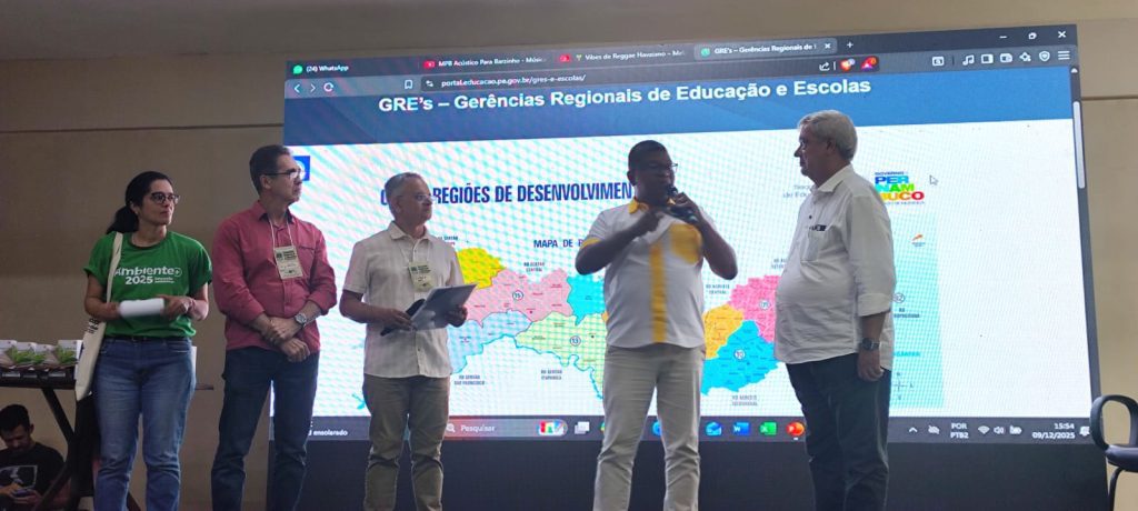 Durante o primeiro dia da formação, foi realizada a premiação do Programa Ambiente+, uma parceria da SEE com a Agência de Meio Ambiente de Pernambuco (CPRH) e com a Secretaria de Meio Ambiente e Sustentabilidade (Semas). Foram entregues 16 prêmios para projetos de diferentes Gerências Regionais, assim como professores formadores da área de Ciências da Natureza. A programação contou ainda com palestras e uma oficina referente à temática do encontro, além do lançamento da versão 2026 do Programa Ambiente+.