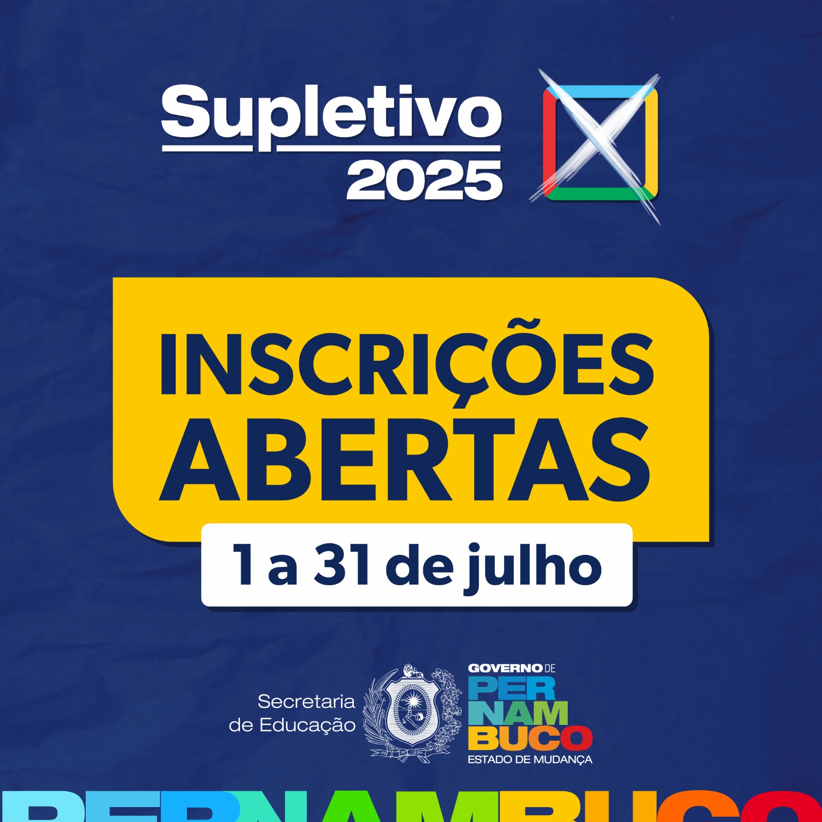 A Secretaria Estadual de Educação (SEE) abriu, nesta terça-feira (01), as inscrições para o Exame Supletivo Anual 2025. Os interessados que desejam concluir o ensino fundamental e o ensino médio devem se inscrever até o dia 31 de julho pelo link (https://supletivo.educacao.pe.gov.br/supletivo/). O participante que não tiver acesso à internet poderá utilizar os computadores das escolas da Rede Estadual de Ensino, mediante consulta prévia e autorização da gestão.
