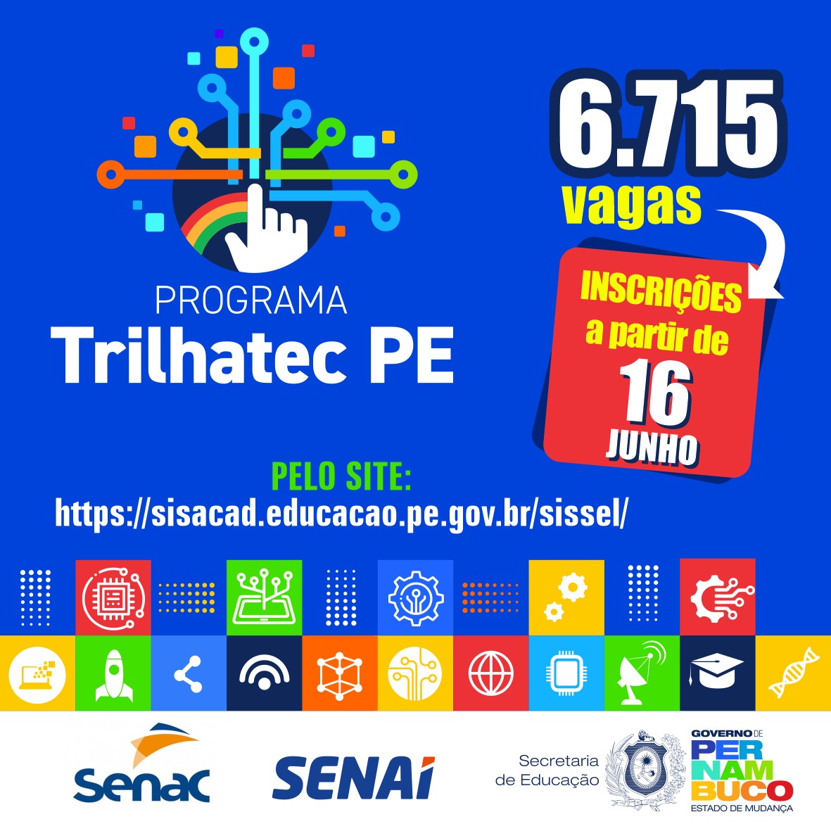 A Secretaria de Educação do Estado (SEE) de Pernambuco divulgou, neste sábado (14), dois novos editais para inscrições no programa Trilhatec, voltado à qualificação profissional de estudantes do ensino médio e da Educação de Jovens e Adultos (EJA) da Rede Estadual de Ensino. Ao todo, estão sendo ofertadas 6.715 vagas em cursos gratuitos promovidos em parceria com o Serviço Nacional de Aprendizagem Comercial (Senac) e o Serviço Nacional de Aprendizagem Industrial (Senai). Os interessados podem se inscrever a partir desta segunda-feira (16) através do site https://sisacad.educacao.pe.gov.br/sissel/.