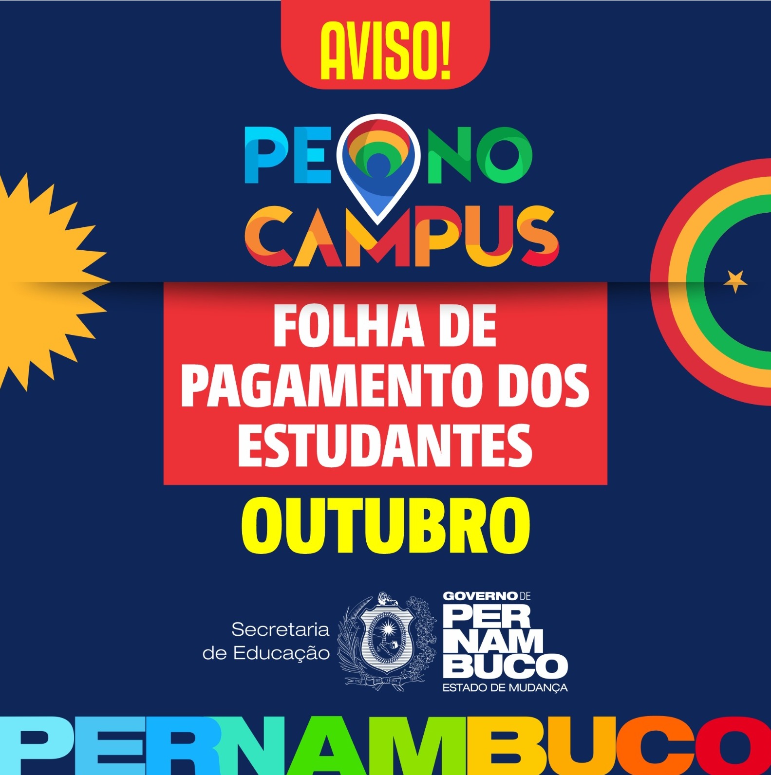 A Secretaria de Educação do Estado de Pernambuco (SEE) divulgou a lista de pagamento do mês de outubro do programa PE no Campus. O pagamento está em processamento e todos os beneficiados irão receber a partir desta sexta-feira (31). A folha de pagamento pode ser acessada aqui.