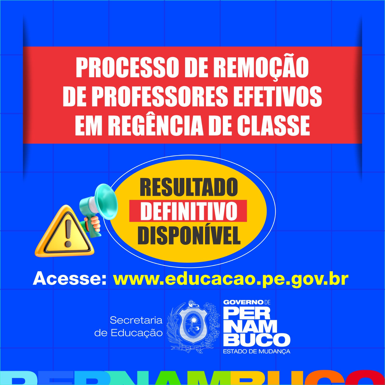 A Secretaria de Educação do Estado de Pernambuco (SEE) divulgou, nesta sexta-feira (31), o resultado final do processo de remoção de professores efetivos em regência de classe.