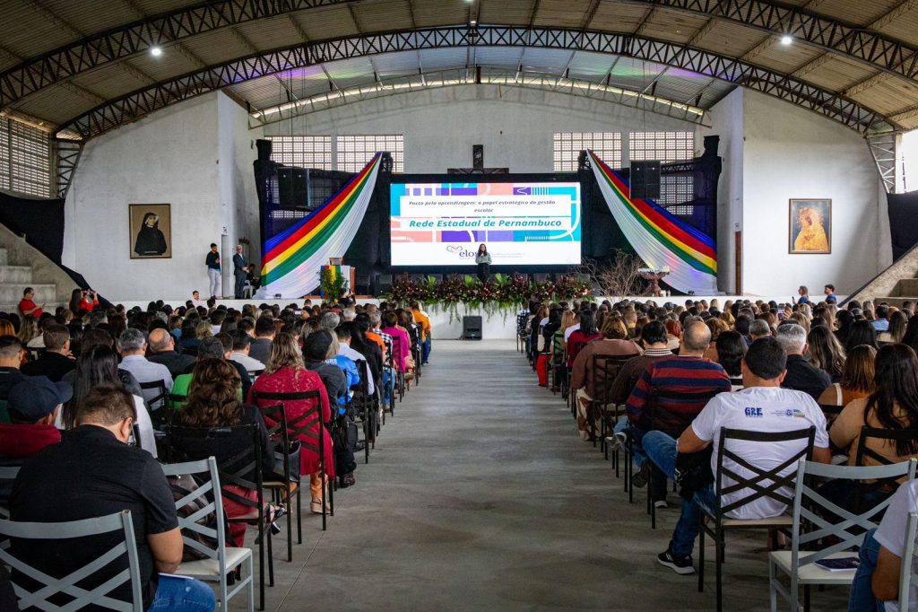 Dando continuidade ao ciclo de encontros da Pactuação de Metas 2025, a Secretaria Estadual de Educação (SEE) realizou, nesta sexta-feira (04), o segundo momento regional da iniciativa. O evento foi sediado na Terra da Misericórdia, localizada no município de Arcoverde, no Sertão de Pernambuco, e reuniu aproximadamente 850 gestores escolares e gerentes regionais das Gerências Regionais de Educação (GREs) Sertão do Alto Pajeú, Sertão do Araripe, Sertão Central, Sertão do Médio São Francisco, Sertão Moxotó-Ipanema e Deputado Antonio Novaes.